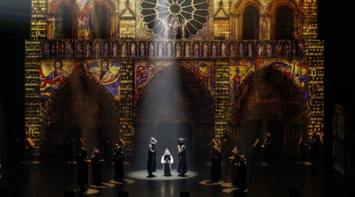 Mise en scène par Corentin Stemler, sur une musique originale de Richard Liégeois, cette création réunit plus d’une centaine d’artistes. Le décor monumental de 10 mètres de haut reproduit les trois portails de Notre-Dame-de-Paris et la Galerie des Rois. Tandis que plus de 800 accessoires enrichissent le réalisme et la démesure des 20 scènes présentées. Chaque tableau vient sublimer l’ensemble et plonge le spectateur au cœur de l’âme de la cathédrale, tour à tour héroïne, témoin et muse.