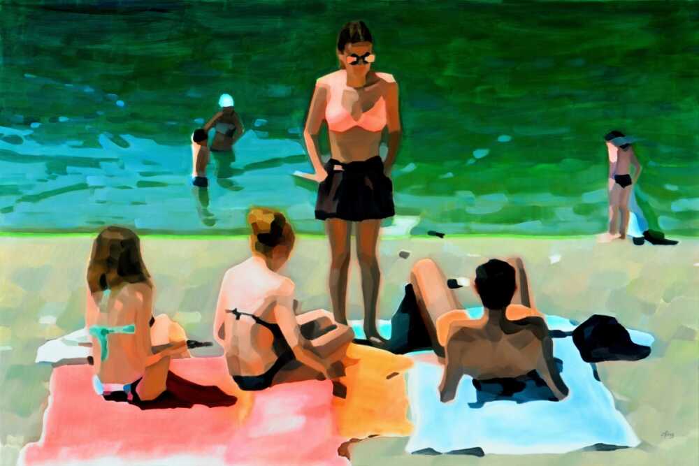 Par de larges coups de pinceau, ni de superflu, LiFang nous offre l’essentiel. Les formes s’effacent dans une lumière suspendue. Elle installe un entre-deux : entre figuration et douce abstraction. Chaque tableau invite à la contemplation paisible, entre rêve et réalité. On y retrouve son propre rivage intérieur où imagination et souvenir s’entrelacent. On pense à l’eau, au rivage, à la caresse du soleil sur la peau. L’été flotte à nouveau…
